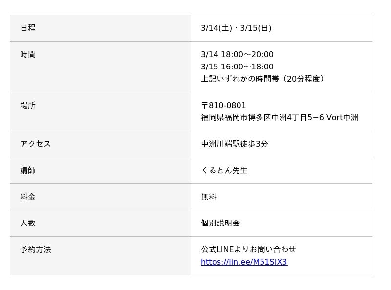 占い師養成CAMPは毎週オンラインで説明会を行っておりますが、このたび福岡天神校で直接個別説明会を行います。