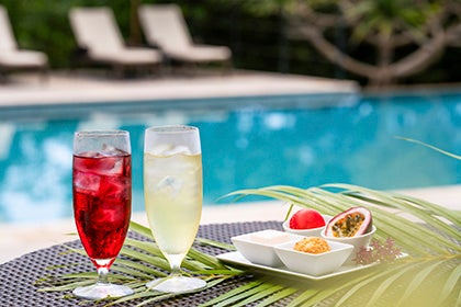 自家農園で採れる素材を用いた季節のカクテルは格別。森に囲まれた心地よい空間で大人のための上質な時間に満たされます。(イメージ)