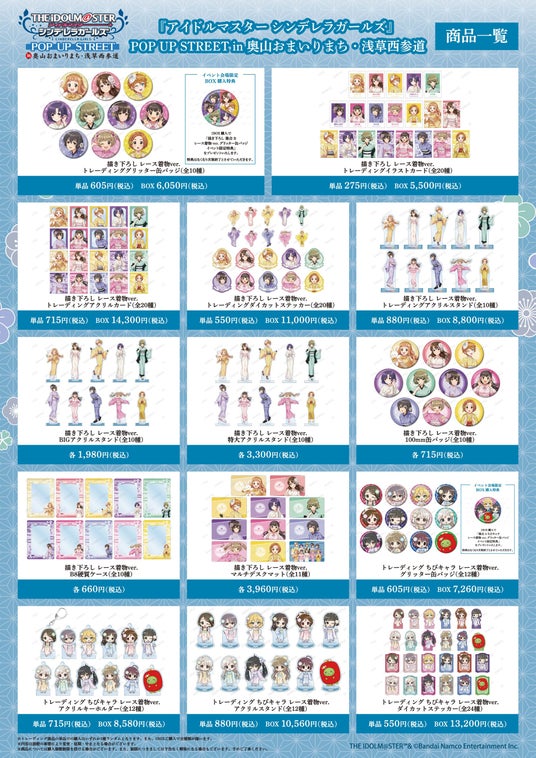 漫画・アニメのオリジナルグッズを販売する「AMNIBUS」を運営する株式会社アルマビアンカは「『アイドルマスター シンデレラガールズ』 POP UP STREET in 奥山おまいりまち・浅草西参道」を開催いたします。