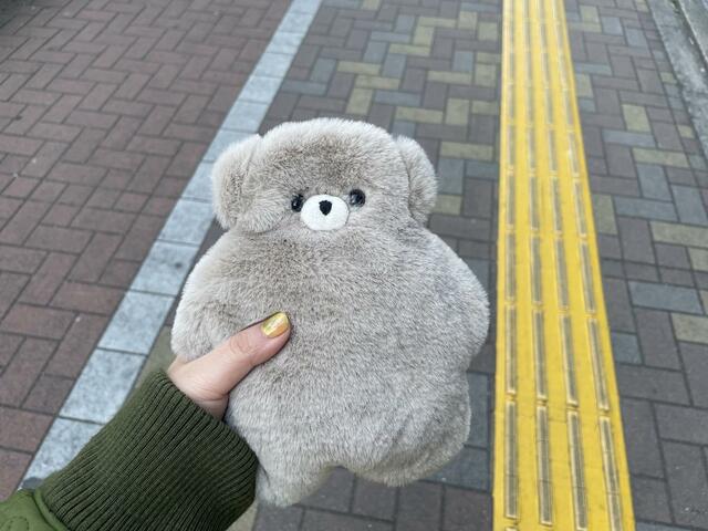 正直、真冬の屋外では心許ないあたたかさですが、じんわりと伝わってくるぬくもりは、ぬいぐるみに”命”を感じてほっこりしてしまいます。