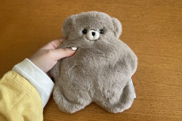 一見すると、ただのかわいらしいテディベアのぬいぐるみ。ですが、背中のスリットを開けると、中には小さなセラミックビーズの袋が入っています。