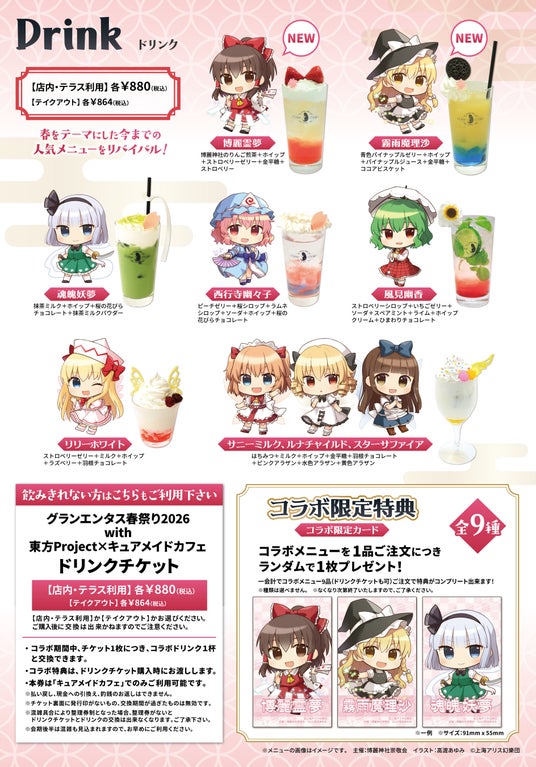 ※《グランエンタス春祭り2026 with 東方Project×キュアメイドカフェ》のコラボメニューご注文特典と同様です。