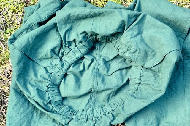 色以外は同じものなので、新品の織部色で細部を紹介すると、表面に凹凸がある綾紬という生地。