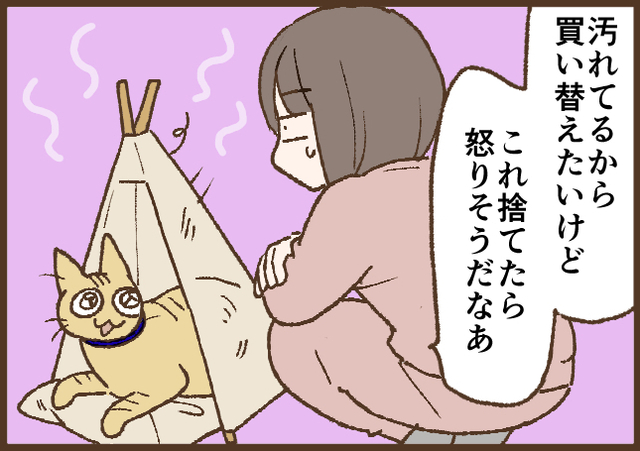 少し手入れするぐらいならいいだろうと思いましたが、猫はニオイに敏感でした…。テント自体の見た目はちょびっとマシになりましたが、入らなくなってしまった(笑)。