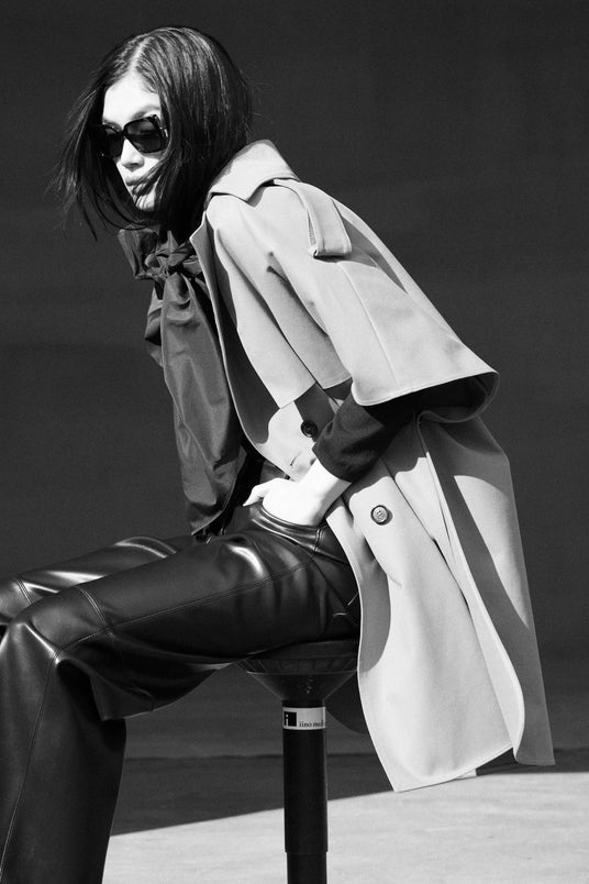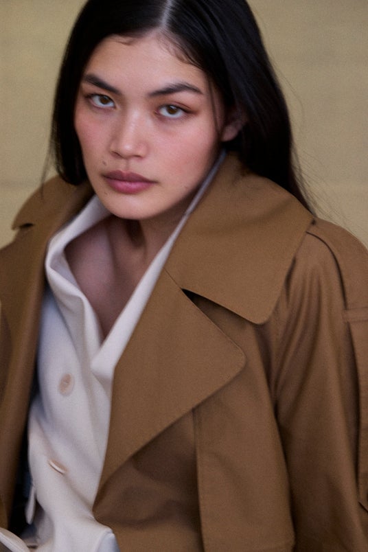 “After Hours”では、トレンチコートを一枚でドレスのように纏い、ウエストマークによって、洗練されたナイトスタイルを演出。日常からそのまま夜の時間へとシームレスにつながる、エレガントで印象的なスタイルを描きます。“Quiet Power”では、ジャケットとトレンチコートをレイヤリングした新しいワークスタイルを表現。構築的なシルエットとミニマルなカラーリングが、静かながらも存在感を放つ“クワイエット・パワー”を体現し、しなやかに時代をリードする女性像を映し出します。