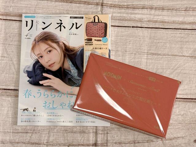 2026年2月19日(木)発売の雑誌『リンネル』4月号増刊には、MOOMIN×Samansa Mos2(ムーミン × サマンサ モスモス)の「衣類圧縮ケース」が付録としてついてきます。