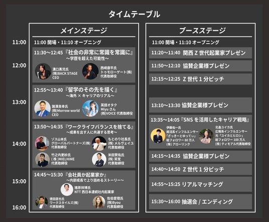当日は、会社員としてのキャリアアップ、起業、海外、SNSなど、多角的なロールモデルや人生感に触れるトークセッションコンテンツを中心に、参加者同士、参加者と企業が繋がるリアルマッチングコンテンツ、就職、転職、インターン、事業提携が可能な企業ブースなどを企画。1日を通じて、情報格差を是正し「新たな選択肢」と出会う環境を提供いたします。