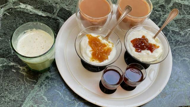プロテイン、ミルクティ、ヨーグルト、今日の元気。