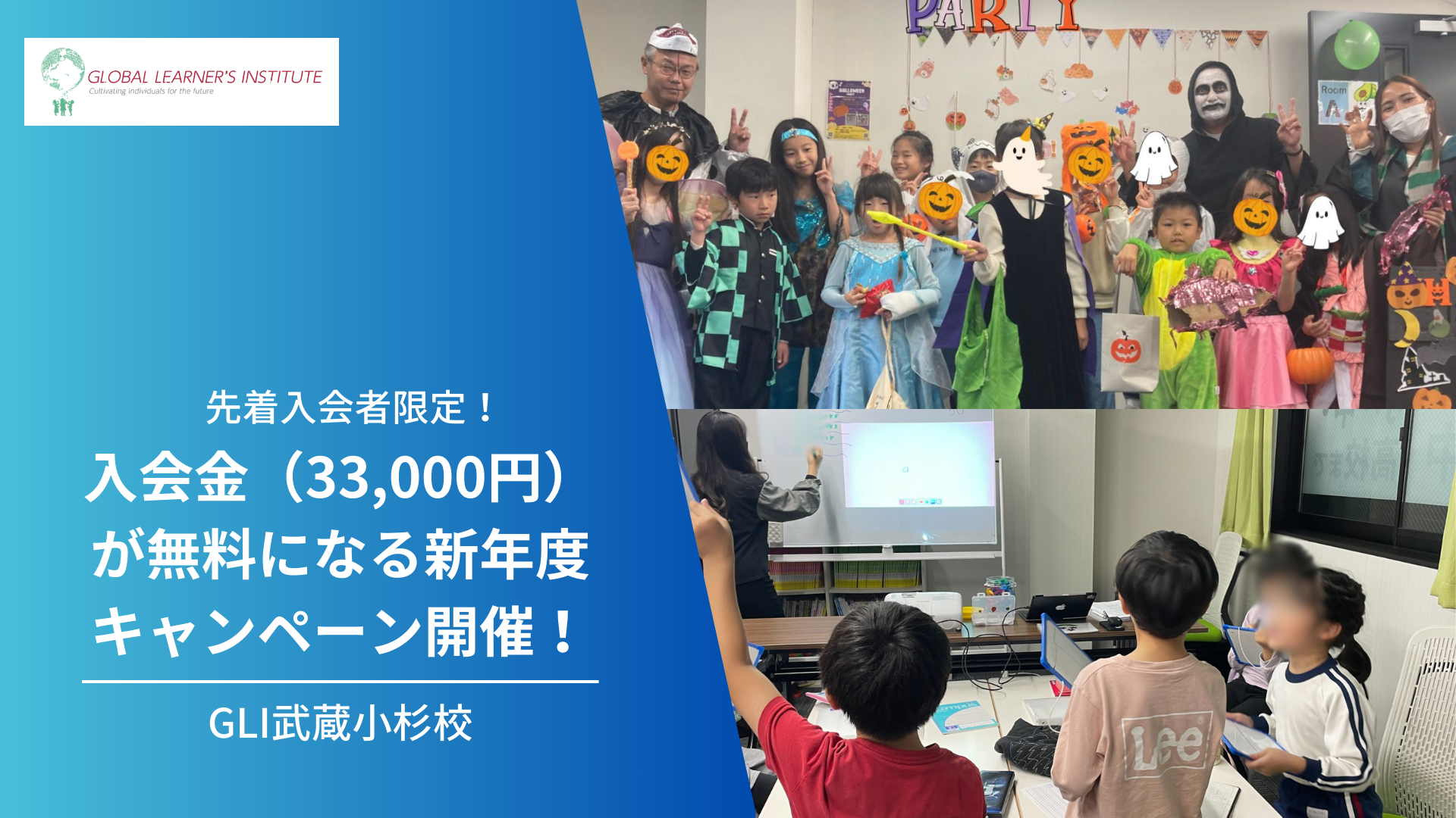 国内外のボーディングスクール進学を視野に入れたコンサルティング型英語教育機関、Global Learner’s Institute(以下、GLI)は、GLI武蔵小杉校において、2026年3月末まで入会金(33,000円)が無料となる新年度キャンペーンを実施いたします。将来を見据えた確かな英語力を育てたいご家庭に向けた期間限定の特別企画です。