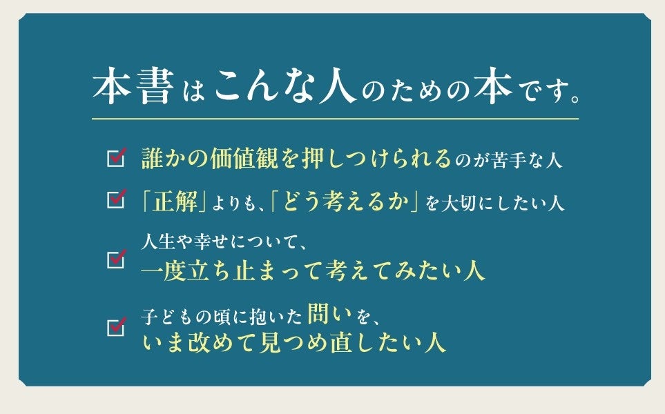 - 人生や幸せについて、一度立ち止まって考えてみたい人
