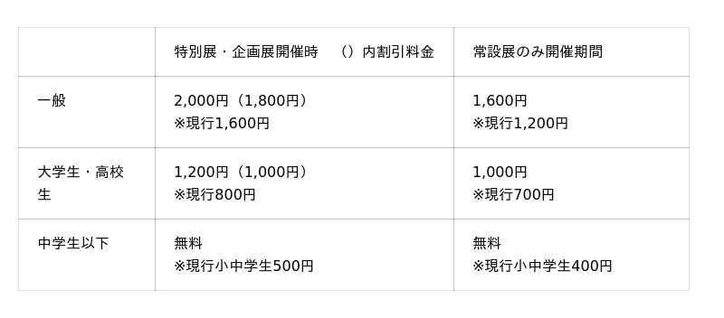 改定日:2026年4月7日(火)入館料改定内容: