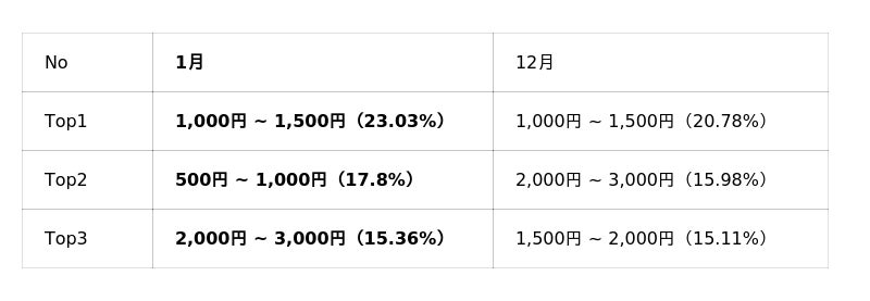 1月は、低~中単価の日用品・実用小物が上位を占める安定構造となりました。