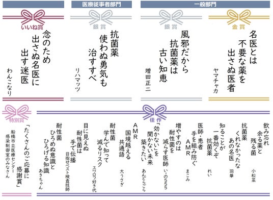 今回ご応募いただいた川柳作品は、さまざまな形で活用させていただき、今後も薬剤耐性対策を進めて まいります。
