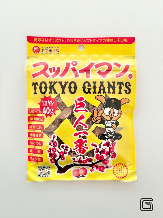 読売ジャイアンツは2026年2月14日(土)から3月1日(日)まで、沖縄セルラースタジアム那覇と奥武山公園で春季キャンプを開催しています。那覇春季キャンプの記念グッズとして、沖縄発の梅菓子ブランド「スッパイマン」より、ジャイアンツ特別パッケージの「スッパイマン巨人一番たねなし」が登場いたしました。