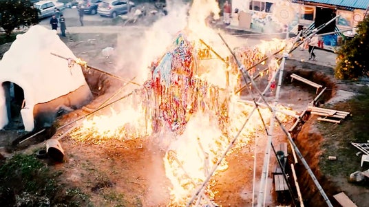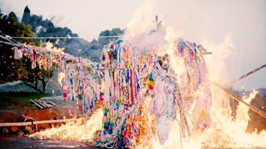 被災地へ送られたものの、保管限界を迎えていた大量の「千羽鶴」に焦点を当てた社会実験プロジェクト。2016年熊本地震の際に、現地で活用しきれなくなっていた約20万羽(トラック2台分)の折り鶴を引き取り、高さ6m、横8mに及ぶ巨大な一羽の鶴を制作。平成から令和へ変わるタイミングでそれらを一気に燃やし(お焚き上げ)、その荘厳な光景を映像化しました。SNS上では都市伝説的に拡散され、10万回以上の再生を記録。社会に対し「祈りのアーカイブ方法」を問い直しました。