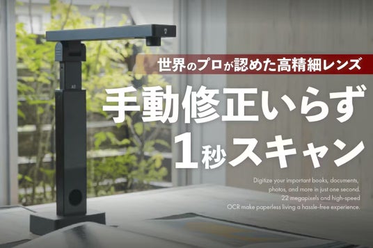 分厚い本も切らずにペダルを踏むだけで即データ化・テキスト化。2200万画素×高速OCRで、面倒な裁断やスキャン待ちはもう不要。