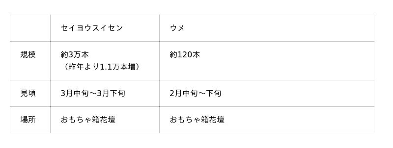 国営海の中道海浜公園(福岡県福岡市東区)では、セイヨウスイセンとウメが見頃を迎え、早春の花の共演が楽しめます。