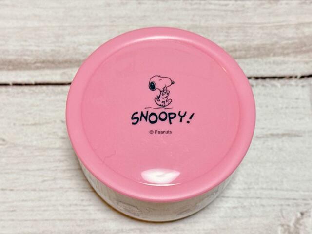 蓋はワンポイントデザイン、側面はスヌーピーとライナスがジャンプする360度プリント仕様。ぐるっと一周眺めたくなるかわいさです。