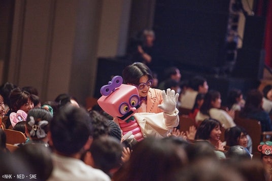 助数詞をテーマにした「ポピンのズンドコ節」(ポピン)、生物の進化をヒップホップにした「ずっしんかー!」(ヴィーテ)では、ウェイキーやドーネなどが2階席、3階席に登場。観客の間近で踊りながら会場を一周し、子どもたちの歓ぶ声が上がる。