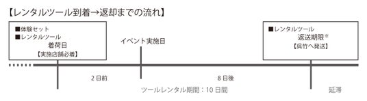 ※イベント用レンタルツールのレンタル期間は原則10 日間です。発送の際に、弊社着払の送り状を同梱しておりますので、そちらを使って期間内にご返送ください。