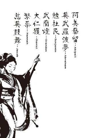 本書には、外国人の名前の当て字紹介に加え、日本文化をより深く楽しめるコラムも収録しています。日本人に多い苗字、動物にまつわる漢字、日本の魚食文化と結びついた文字、忍者や武士をイメージさせる漢字など、日本語表現の奥深さはもちろん、文化的背景にもふれられる構成になっています。