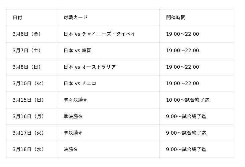 ・詳細な対戦カードはワールドベースボールクラシック公式サイトにてご確認ください。(現地時間と日本時間で記載が異なる場合がありますのでご注意ください)