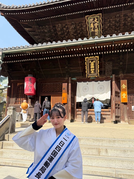 信濃は、香川県善通寺市の善通寺で戒壇巡りを体験し、金堂でご本尊を参拝。御影堂で行われた「一日四国運輸局長」任命式では、「お遍路は初めての経験ですが、道の点検や美化活動はもちろん、歴史を学びながら、自然を楽しみ、みなさんと触れ合える素晴らしいイベントだと思いました。瀬戸内のアイドルとして、私たちが発信することで、全国、そして世界へと魅力を届けていきたいです」と意気込みを語った。