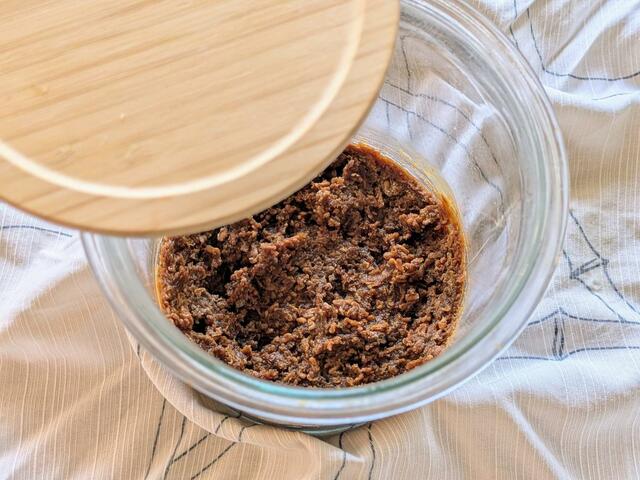完成した味噌は、家の中の涼しい場所に置いておくだけ。直射日光を避ければ、いつもの収納スペースでOK。