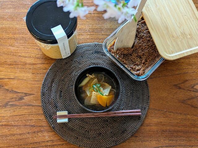 半年ほど寝かせて完成した味噌で、まずはお味噌汁をつくりました。