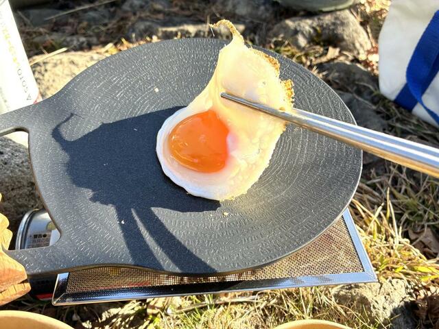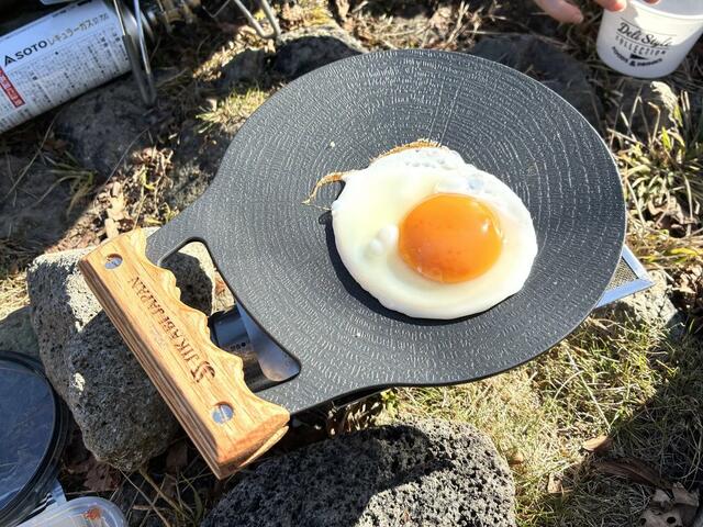スキレットで焼く場合には、予熱具合や油の量が気になる目玉焼き。
