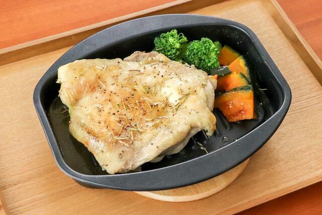 チキンステーキをつくってみたところ、同じようにキレイな焼き目がついて皮がパリッと仕上がりました。