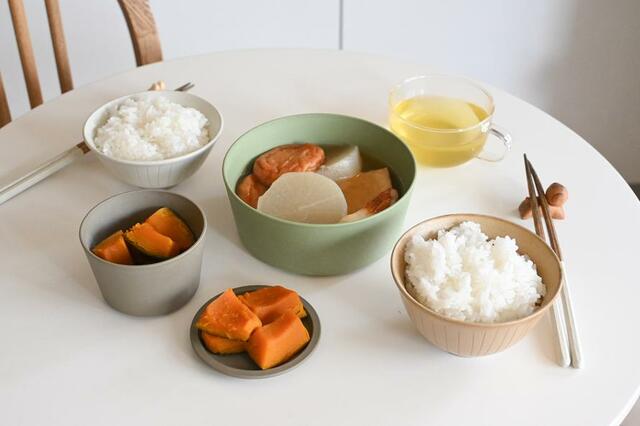 どちらも食卓に自然になじむカラーで、和・洋問わずどんなお料理にも合わせやすい色合いがステキ。