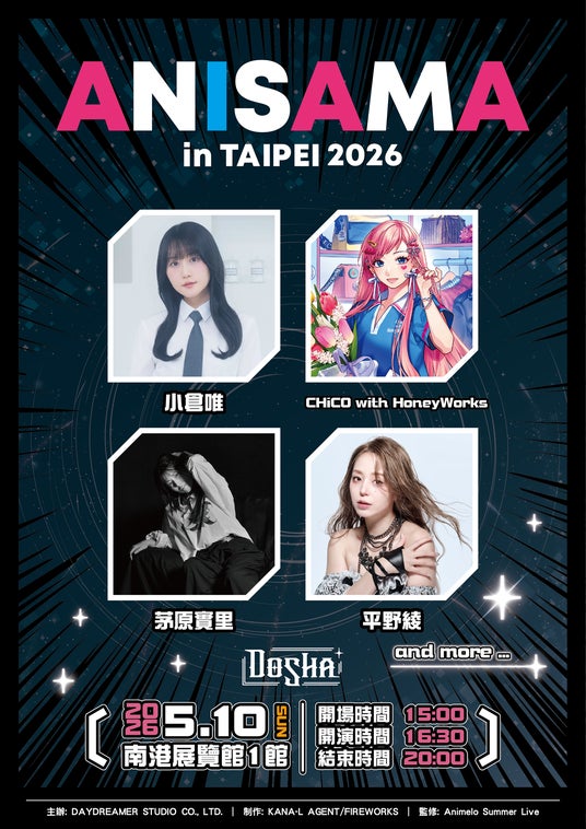 2026年5月10日(日)に台北南港展覧館1館 で開催する「ANISAMA in TAIPEI 2026 -DOSHA!-」の第一弾出演アーティストが発表!