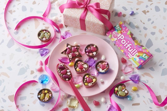 見つけてハッピーなハートポイフルを贅沢にトッピング!ばらまきにも最適な手軽さともらって嬉しい可愛さでハッピーが広がります。