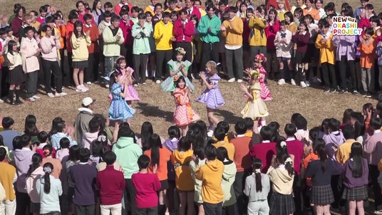 快晴の青空の下、ファンクラブで募集した390名の学生に迎えられ、FRUITS ZIPPERのメンバーが撮影現場に登場。「おはようございます、私たちFRUITS ZIPPERです!」とファンに向けて挨拶すると、大きな拍手と歓声が湧き起こり、会場は一気に高揚感に包まれました。撮影は、校庭でFRUITS ZIPPERのメンバーを中心に、ファンが歩きながらダンスをするシーンからスタート。ドローンで上空から撮影し、“さまざまな果汁グミがミックスされていく様子”を撮影しました。撮影中、仲川さんは「若いエネルギーに満ちあふれていて、みんな『チーム!』って言ったりとか、雰囲気が本当に楽しくて、心から撮影を楽しんでいます」と語りました。撮影終了後は大きな拍手が送られ、FRUITS ZIPPERのメンバーは撮影現場を後にしました。