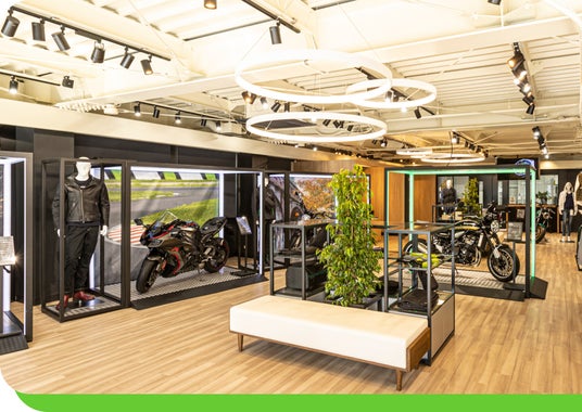カワサキのブランドが伝わる空間で皆様のモーターサイクルライフをご購入から、メンテナンスまでフルにサポートいたします。