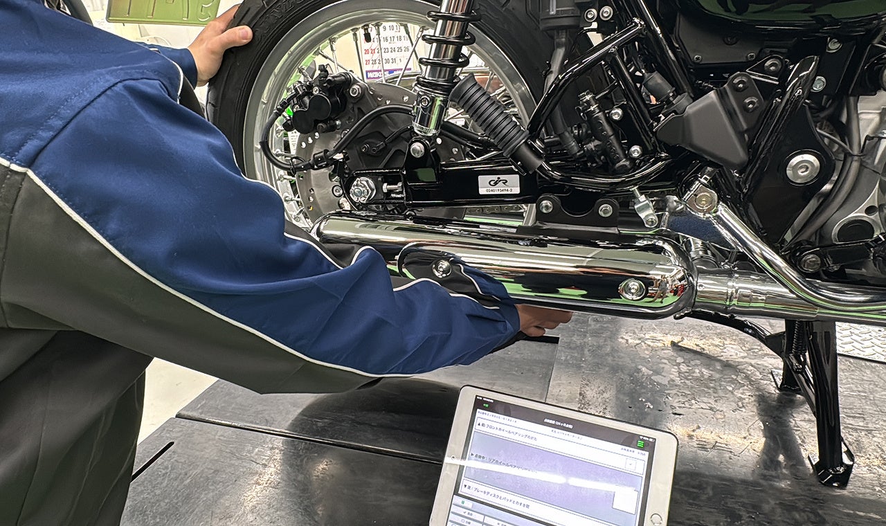 安心のサポート体制(認証工場) テクニカルセンターを併設し、メーカー研修を受けた熟練のメカニックが、愛車のメンテナンスやカスタムをサポート。購入後も安心してバイクライフを楽しんでいただけます。