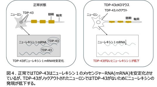 ニューロンのTDP-43はニューレキシン1のメッセンジャーRNA(mRNA) *6の安定化を介して軸索の髄鞘化を誘導する。