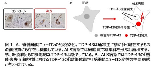 *1)TDP-43:RNA結合タンパク質。通常は核に多く存在しRNA代謝に関わっている。