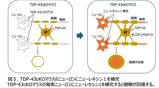 ・ニューロンのTDP-43がニューレキシン1*5発現の制御を介して軸索の髄鞘化を促進していることを解明