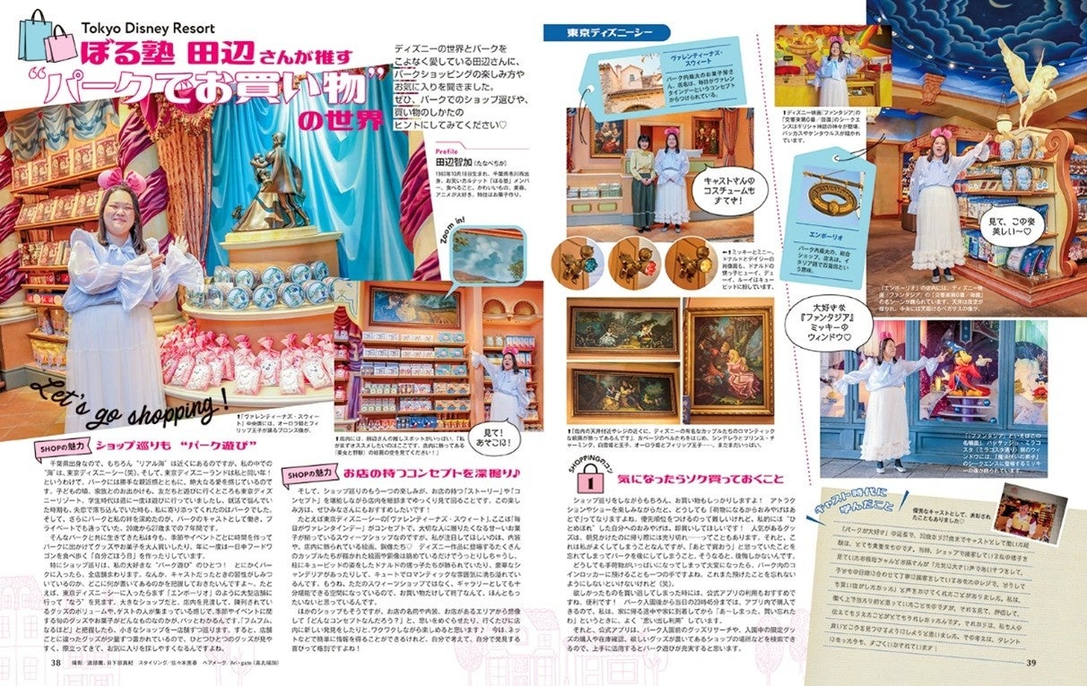 さらに、過去に東京ディズニーシーのショップでキャストをしていたエピソードでも有名な、ぼる塾の田辺智加さんが久々に登場。優秀なキャストとして表彰されたこともある田辺さんだからこその、パークでのショッピング体験の魅力を教えてくれます。今、おすすめのお菓子も紹介!