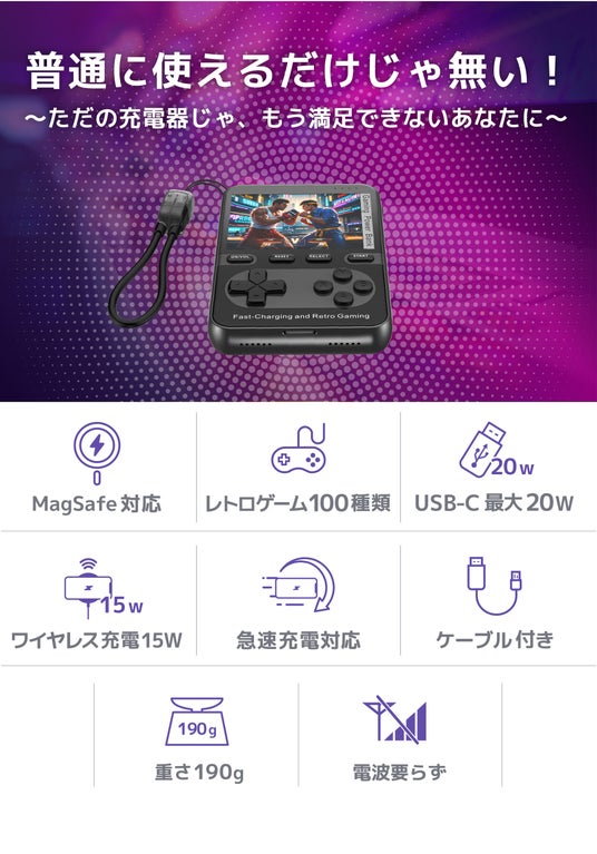 モバイルバッテリー&レトロゲーム100種内蔵のデュアル機能設計