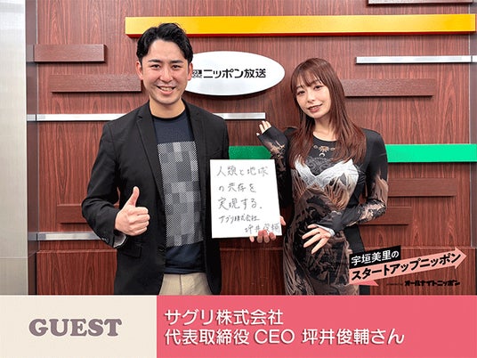 最後に宇垣が「生活を送ったり、仕事をするうえで大切にしていることはありますか?」と質問すると、坪井は「人類と地球の共存を実現する」と会社のビジョンとして掲げている言葉を挙げた。