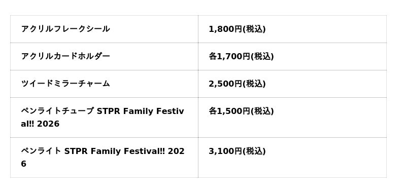 また、本グッズは2026年3月7日(土)17:00より、STPR ONLINE STORE にて販売を開始いたします。さらに、3月28日(土)・29日(日)に開催される『STPR Family Festival!! 2026 in Kアリーナ横浜』の会場にて、先行販売も行います。