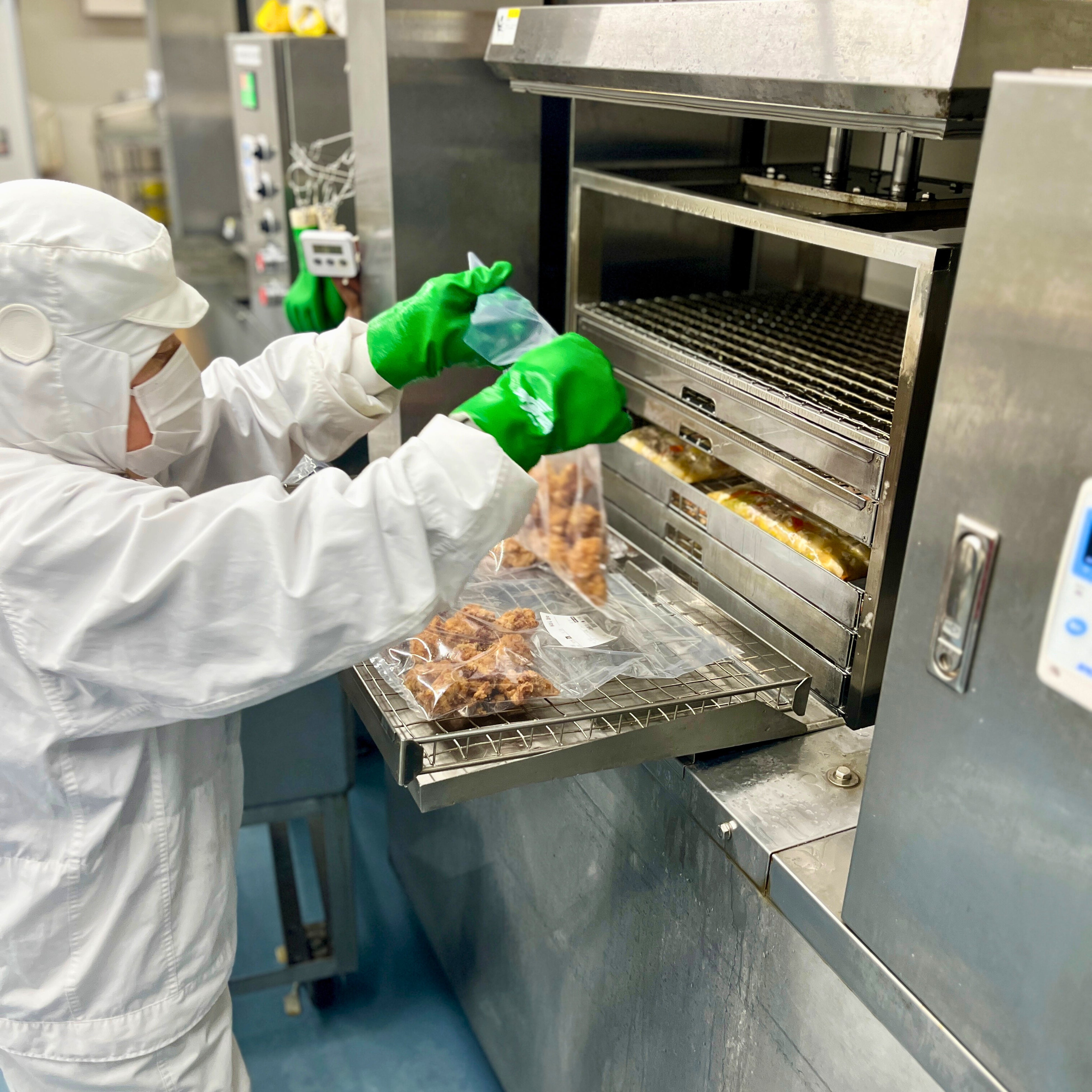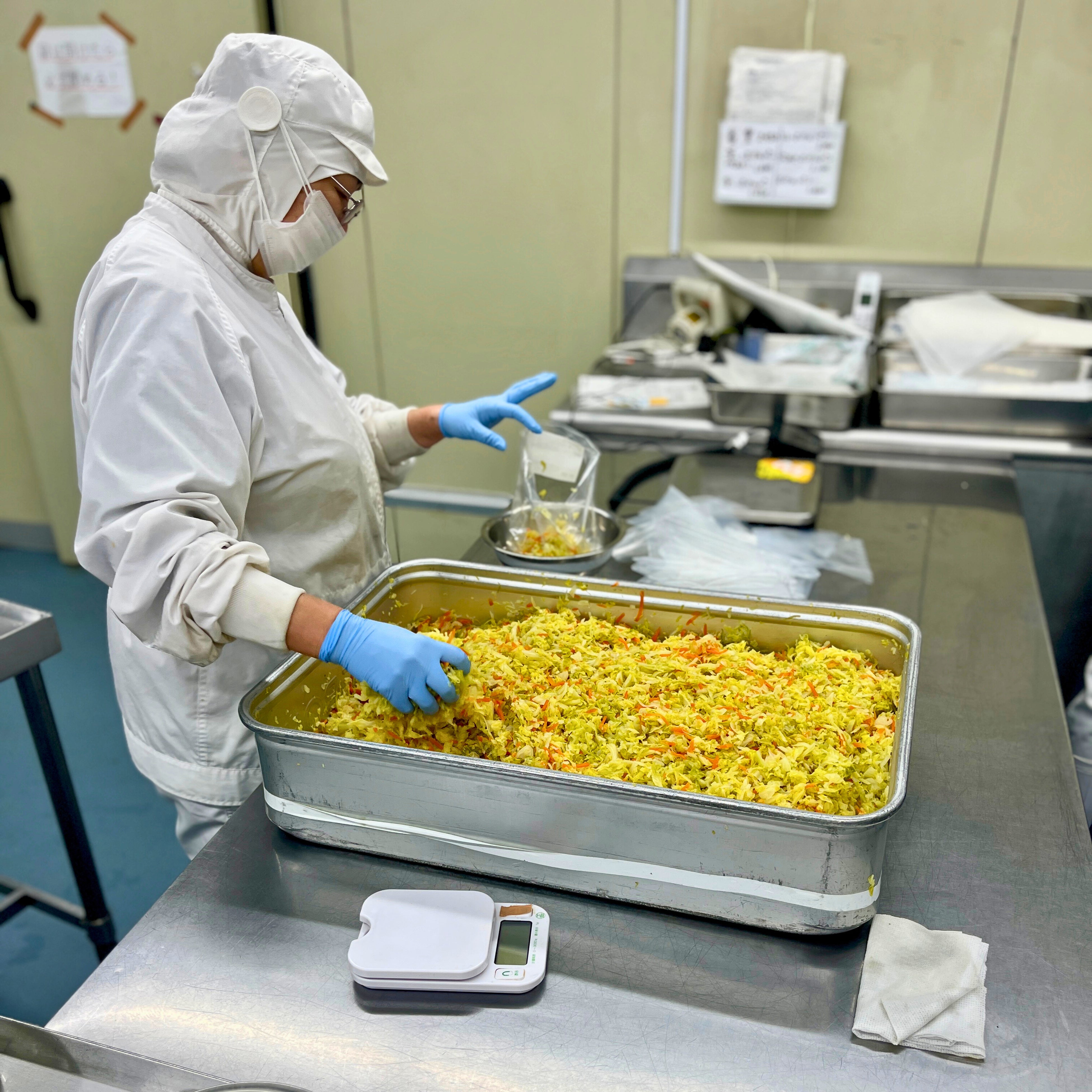 セントラルキッチンにて、食材の仕入れから調理、凍結までを自社で行い、