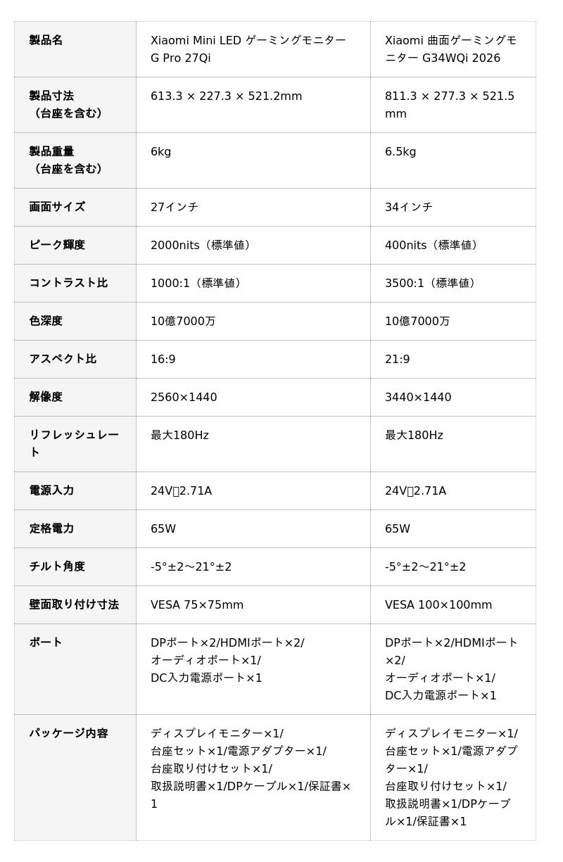 ■Xiaomi Mini LED ゲーミングモニター G Pro 27Qi 2026