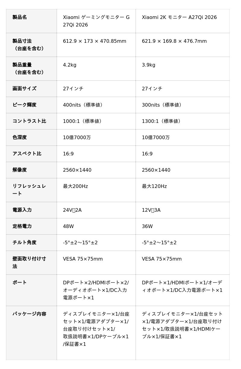 ■Xiaomi ゲーミングモニター G27Qi 2026
