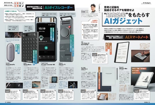 ・仕事を爆速化する「AI搭載ガジェット」:AIスマートノート、AIボイスレコーダー、スマートグラスなど最新デバイスを網羅。
