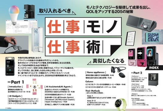 令和の仕事は根性論では遂げられない! アウトプットを加速させる最新のAI搭載ガジェットから、集中力を生むデスク環境、精度を高める文房具、余白の時間を生み出す家電まで。モノとテクノロジーを賢く日常に実装し、パフォーマンスとQOL(生活の質)を最大化させる「205の秘策」を徹底解説します。■ 特集目次