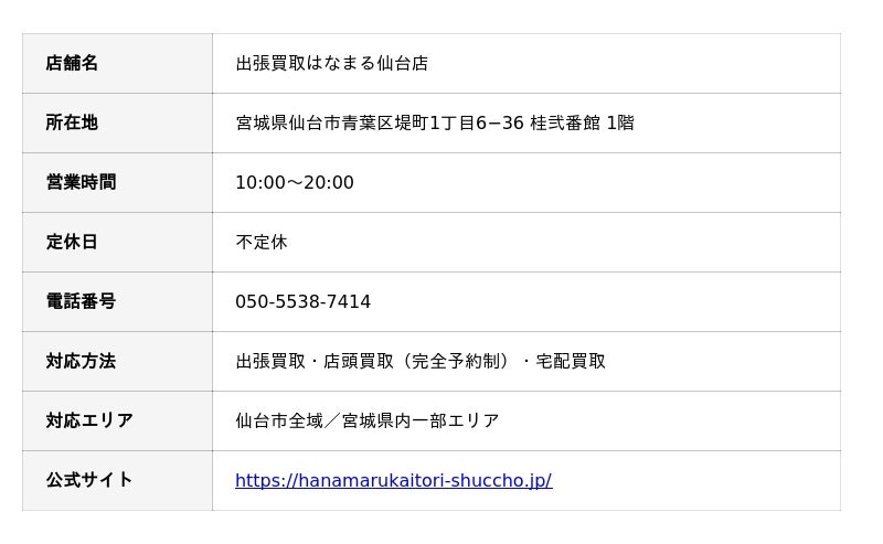 出張買取はなまる仙台店の店舗詳細